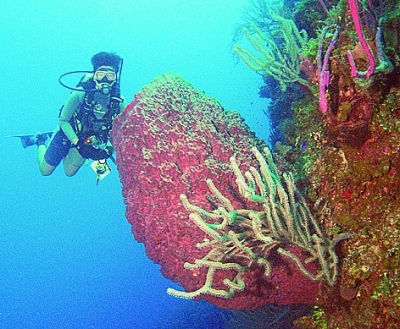 科学家在巴哈马群岛的圣萨尔瓦多岛发现一个巨大的千年筒状海绵。CFP