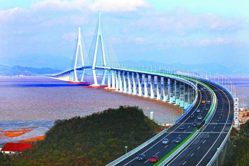 这是2012年12月29日竣工通车的象山港跨海大桥。鲜为人知的是,大桥从2003年7月立项到2009年6月动工,近6年曾4改设计方案。每当大桥设计方案完成,象山县有关负责人就拿着设计图,挨个到驻军单位征求意见。当海军某部提出大桥设计的40米净空高不够,会影响部队舰艇通行训练后,大桥施工方进行反复论证,比预算资金多增加了4个多亿,最终将大桥通航净高增至53米,通航等级达5万吨级,不仅大大方便了民用出行,又充分满足了军事需求。