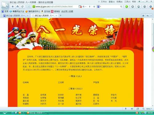 3月25日,点开浙江省人民政府网,去年浙江省军区联合地方相关部门在省市县三级主流媒体开辟的“八一光荣榜”专栏至今还能访问浏览。只要点击杜峰峰的名字,他荣立一等功的简要事迹和戎装照片都会展现在网页上。