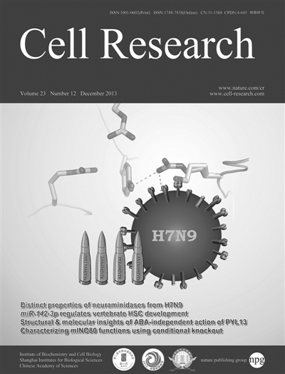 上图高福研究团队对H7N9神经氨酸酶的耐药研究作为封面文章在Cell Research发表