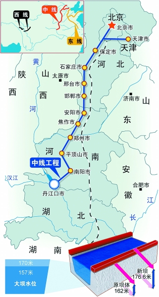 南水北调中线工程2003年开工,目前已经进入通水倒计时,预计将于今年汛后通水。这个工程从湖北丹江口水库调水,年均调水量95亿立方米,途经湖北、河南、河北,到达天津、北京,涉及地域之广,自然条件之复杂,建设难度之大,在世界上都极为罕见。