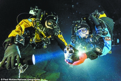 潜水员在墨西哥海底洞穴中发现“纳亚”头骨。