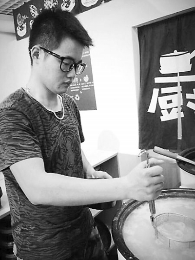 北大法学硕士张天一的店就开在这里,40平方米,月租金近万元。不一样的是米粉店的海报招牌:“硕士粉,良心粉”,“我们是90后,在环球金融中心,为自己上班。用知识分子的良知,在他乡,还原家乡的味道”。