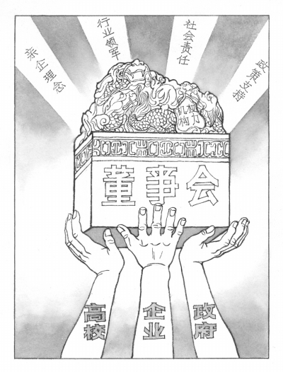 校企合作难于有效开展的深层次障碍在于制度缺失,因而必须从改革办学体制入手进行根本性突破。学院章程明确规定,“采取股份制办学,企业化管理,实行董事会领导下的院长负责制,以探索中国高等职业技术教育产业化的有效途径”。建校伊始,学院就积极倡导企业、行业和社会各界参与到学校的建设中来,借鉴新加坡南洋理工学院的办学模式,成立了由企业、政府、高校等机构组成的董事会,实行董事会领导下的院长负责制。学院严格按照“行业领军企业、著名品牌、实力雄厚、社会责任感”四大标准聘请董事,企业、高校和政府在董事会席位中分别占到67%、26%和7%。企业董事中,包括德国博世、芬兰诺基亚、荷兰飞利浦、韩国三星、美国AMD等在内的跨国行业巨头,占董事企业的80%,形成以外企为主体的董事会。董事会有效融合了政府、企业和学术等资源,从政策、经费、专业等方面为学院发展提供强大的支持,尤其是对学院的发展战略起着决定性的作用。董事会主要行使7项职权:负责公开招聘院长、副院长;听取和审议学院的工作报告和其他提案,包括学院的年度工作目标和近远期规划;执行股东会决议;推荐决定各专业委员会主任委员人选;审议董事提交的议案和其他动议及附议;审议学院内部管理机构的设置;审议学院的基本管理制度。