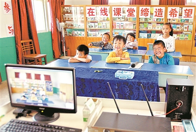 安徽省繁昌县孙村镇长寺教学点学生跟着“在线课堂”的老师上音乐课。 本报记者 张学军 摄(资料图片)