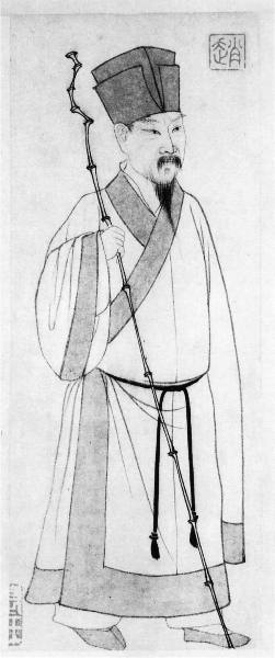 元代赵孟頫所作的苏轼画像中,苏轼手拄筇竹杖。