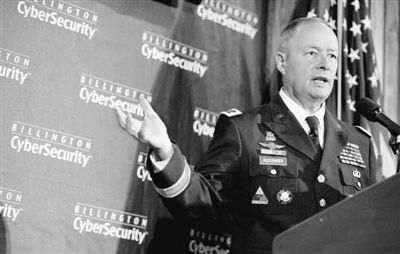 2013年9月25日,美国华盛顿,美国国家安全局局长亚历山大出席第四届年度网络安全峰会时,讨论了“媒体泄露”这一话题,并且为国家监控方案辩护。人民视觉