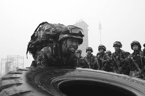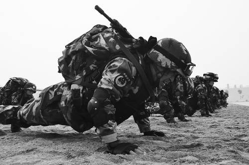 在教导队里,参选队员从早到晚,每天都有10个小时在进行各种课目的超强度训练。每天,队员们都要负重进行两次5公里奔袭,并要扛着百十斤重的圆木,分别完成200次推举、200次下蹲和200次仰卧起坐,还要拖着10公斤重的轮胎反复练习百米冲刺。