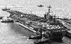 出师不利 2008年5月22日,油漆一新的“华盛顿”号在南美洲太平洋一侧海域进行例行补给时,因船员吸烟引发火灾,造成37人受伤,80多个舱室毁损,舰长因此被撤换,赴日部署被迫延期。在圣迭戈海军基地修理了两个多月启程日本后,日本地方政府和民众因担心核泄漏,又举行了针对“华盛顿”号航母的大规模抗议。