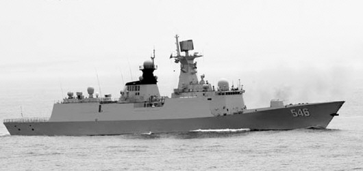 中方军舰为盐城号导弹护卫舰(右上图),隶属海军北海舰队。基本参数为:排水量4300吨,长134米,宽16米,吃水深度4.5米,最大航速29节,续航力4000海里/18节,载员180人。主要武器装备有:100毫米舰炮、反舰导弹系统、防空导弹、直-9舰载直升机、鱼雷发射管、反潜火箭发射器等。