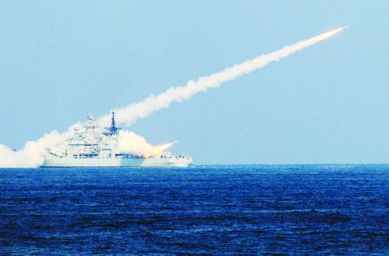 在“能打仗、打胜仗”精神指引下,中国军队的训练越来越贴近实战,这是改进作风在军事训练领域的重要体现。图为2013年10月17日,海军北海舰队在黄海海域开展复杂电磁环境下的导弹实射演练。CFP供图