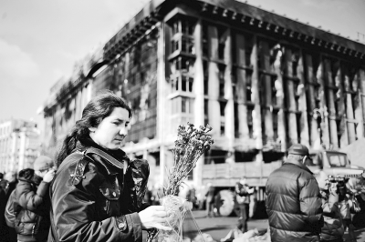 2月24日,一名女子在乌克兰首都基辅的独立广场上献花。 新华社发