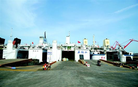 图为:18日拍摄的停泊在海口市秀英港的“紫荆十二号”、“五指山”、“铜鼓岭”号客轮。三艘客轮18日陆续前往越南。 (新华社发)