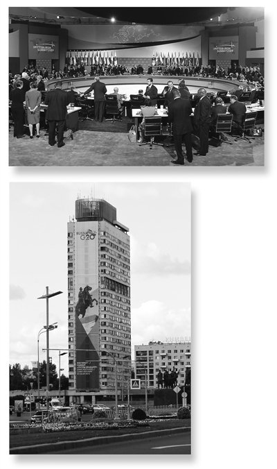 下图:二十国集团领导人第八次峰会于2013年9月5日至6日在俄罗斯圣彼得堡举行。图为峰会前夕圣彼得堡街头的二十国集团峰会宣传牌。新华社发