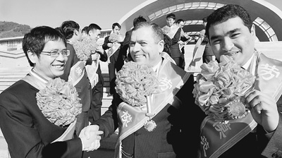 来自中石化叙利亚分公司的艾勒·阿克瑞(左二)以优秀业绩获得了该公司年度劳动模范称号。