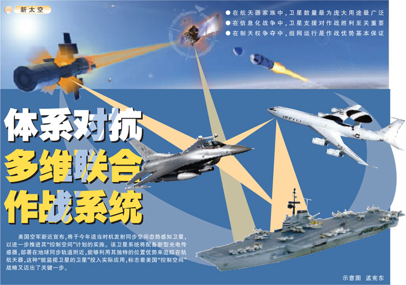由于卫星作战系统的运用,现代战争突破了以往战场的时空禁区,把战场推向了全时空和超立体化,同时极大地提高了武器装备效能,可实时了解战况,把陆、海、空、天、电、网链接成多维战场,把精确制导武器系统、实时信息支援系统、电子战系统和指挥自动化系统有机地结合在一起,构成了新一代联合作战体系,为创造全面感知战场空间的信息环境打下了重要基础。