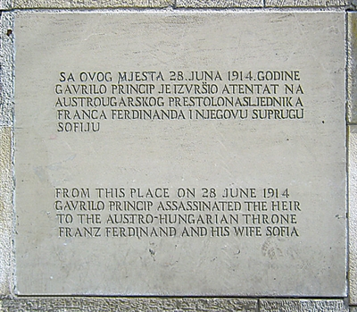 右图为萨拉热窝街头有关这一事件的纪念文字。