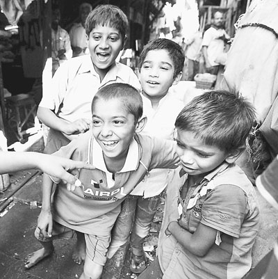 图④:印度贫民窟里玩耍的孩子。新华社发