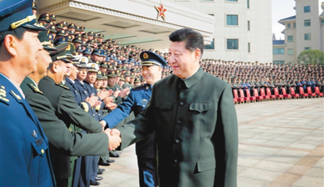 2014年12月14日,中共中央总书记、国家主席、中央军委主席习近平到南京军区机关视察。这是习近平接见驻宁部队师以上领导干部和南京军区机关团以上领导干部。