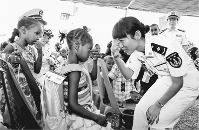 8月27日,正在苏丹进行友好访问的中国海军152舰艇编队派出小分队,慰问非洲妇女儿童基金会苏丹红海州分会孤儿院的孩子们。