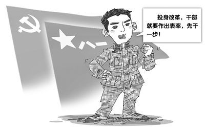 习主席反复强调,干部“要强化带头意识,时时处处严要求、作表率”。干部队伍是深化国防和军队改革的组织者、推进者,更是参与者、实施者,能不能带头贯彻落实好改革的各项政策规定,尤其是在涉及自身利益时能否做到以大局为重,发挥良好的示范表率作用,直接关系着广大官兵对改革的态度和行动,直接关系着改革举措落实的质量和水平。作为一名军队干部尤其是领导干部,就应当时刻牢记自己肩上有千斤重担,身后有千军万马,决不能在关键时刻矮化自己,不能给干部这个称呼抹黑。