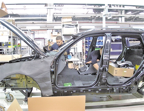 图为在中埃合资的汽车装配厂,工人们正在装配汽车。本报记者 徐惠喜摄