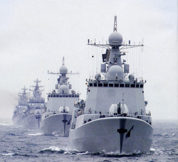 资料图:中国北海舰队新型防空驱舰逐海上编队