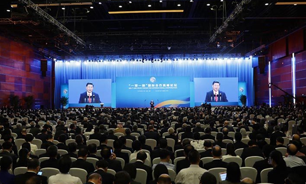 图:2017年5月14日,“一带一路”国际合作高峰论坛开幕式在北京国家会议中心举行,习近平出席“一带一路”国际合作高峰论坛开幕式并发表主旨演讲。