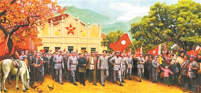 1927年党领导的秋收起义,创建了工农革命军,开辟农村包围城市的革命道路,也产生了人民军队的第一面军旗——工农革命军军旗。从工农革命军军旗到中国工农红军军旗,再到中国人民解放军“八一”军旗的历史演变,反映了中国共产党领导武装斗争的历史,体现了人民军队高举着军旗一往无前、英勇奋战的历史。