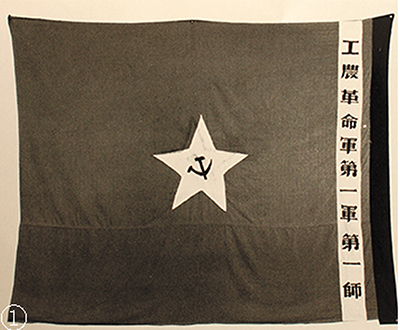 至1937年全国抗战爆发后红军改编为八路军、新四军前,中国工农红军一直在使用“中为黄色交叉的镰刀与锤子,右角上有黄色的五角星”的红军军旗。