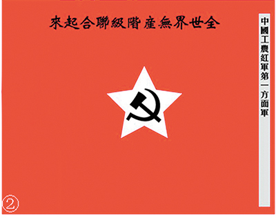 图②:中国工农红军第一方面军军旗(按《关于红军各级军旗的规定的通知》复制)。