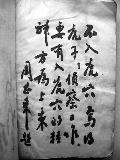 周恩来题词:“不入虎穴,焉得虎子!侦察工作要有入虎穴的精神方为上乘。”