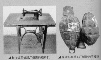 左图:长汀红军被服厂使用的缝纫机 右图:福建红军兵工厂制造的手榴弹