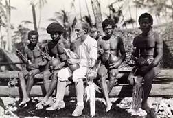 马林诺夫斯基(1884-1942年):波兰裔英国人类学家,其研究成果成为20世纪初人类学和法学交叉学科“法律人类学”的重要文献。图为他(左三)与土著人在一起。