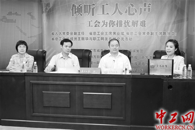 黄业斌、陈宗文、王丽华等广东省总领导在“工人在线”活动现场倾听职工维权诉求