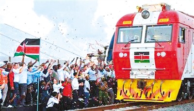 中国帮助肯尼亚修建的高铁通车,当地人民欢欣鼓舞