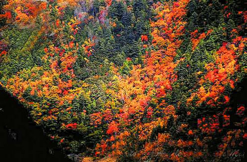 秋天是米亚罗最灿烂的季节,这时的色彩以松树、柏树、青冈树等常绿树的绿色为背景底色,枫树、桦树、槭树等众多植物的红色、橙色、金黄色等绚烂的颜色为主色调,像是造物主打翻了调色板一般。