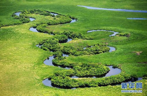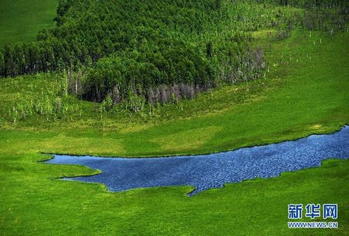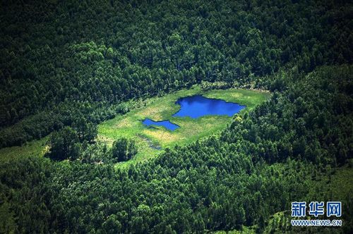 这是南瓮河湿地的一处航拍景观(6月18日摄)。南瓮河湿地是我国唯一的寒温带岛状林国家级湿地自然保护区,地处大兴安岭东部林区,伊勒呼里山南麓,总面积229523公顷,是嫩江的源头。记者日前乘坐直升机在湿地上空盘旋一周,在空中用镜头记录南瓮河湿地的美景。(王凯 摄)