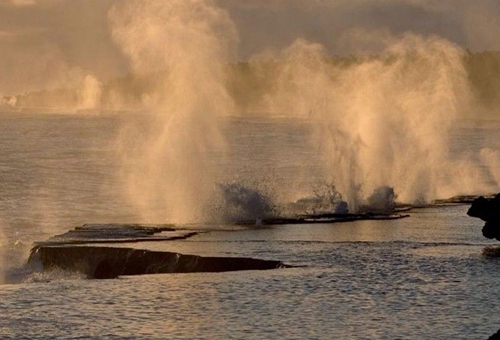 喷潮洞位于汤加塔布岛南岸的喷潮洞与萨摩亚的萨瓦伊岛喷潮洞齐名,是南太平洋独特的奇观。绵延数千米的珊瑚海岸被侵蚀成千奇百怪的孔洞,而且洞洞通天,每当涨潮时,惊涛骇浪汹涌地拍向海岸,海水顺着礁石中成千上万的大小洞穴竞相喷涌出来,形成数十米的水柱在空中绽放,这就形成了世界闻名的“喷潮洞”。