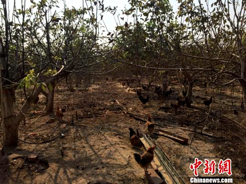 鸡群漫步在核桃林见 李茜 摄