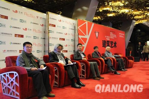 千龙网北京4月16日讯 16日下午,2013第五届中国国际建筑艺术双年展新闻发布会在国家体育场鸟巢金色大厅举行,中外建筑名家云集一堂。哈佛大学设计研究生院院长莫森-默斯法塔维,世界当代建筑遗产大会中国主席刘克成,普利兹克建筑奖首位中国籍得主、中国美术学院建筑艺术学院院长王澍,中国工艺美术大师、中国铜建筑之父朱炳仁,台湾着名雕塑家、台湾雕塑学会理事长杨奉琛,以及中国建筑文化研究会秘书长刘凌宏,中国当代着名建筑师朱锫等大师都出席了发布会。