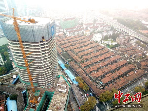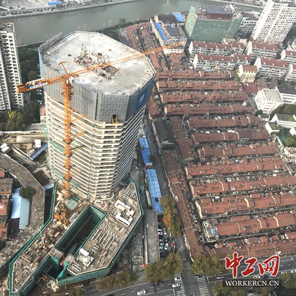 中工网讯 2016年11月17日,由中建二局上海分公司承建的世纪盛荟广场——西斯文里项目主体结构封顶。至此,曾经上海最大的石库门住宅里弄之一成功地被24层高的新建商业综合体所取代。