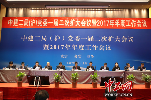 中工网讯 2月17日,中建二局上海公司党委一届二次扩大会议暨2017年年度工作会在上海圆满召开。会议全面回顾了上海公司2016年各项工作成果,并对2017年发展任务进行周密安排和部署。