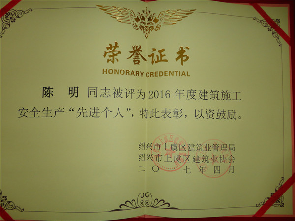 中工网讯 4月21日,在上虞区施工质量安全工作会议上,中建二局上海公司上虞万达广场项目荣获上虞区2016年度建筑施工安全生产“先进项目部”称号,同时授予上虞万达广场项目安全总监陈明同志建筑施工安全生产“先进个人”称号。 据悉,项目在2016年度积极配合上虞区建筑业管理局和上虞区建筑业协会的安全生产工作,特别在护航G20杭州峰会期间,顾全大局,出色地完成了各项护航任务。(张中杰)