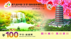 本报讯(记者孙颖)北京园博会门票平日普通票票价为100元,10日开始预售,购票可享9折优惠。