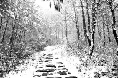 图为1月14日,2014年福建的第一场雪飘落宁德市周宁县的第二天,该县的山路被浓厚的白雪覆盖。张少坤摄