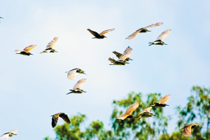 栖息在白鹭湖边的鹭鸟。本报记者 宋国强 摄