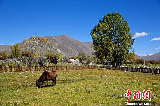 中新网康定10月13日电(记者 燕磊)翻过风光秀丽的折多山,欣赏着路边排排康巴小楼,“2014网络媒体‘两路’行”川藏采访分队沿国道318来到瓦泽乡营官村环境优美的湿地公园。谈及在此地修建湿地公园发展旅游的原因,瓦泽乡乡长西绕对记者表示,川藏线起到决定性的作用。