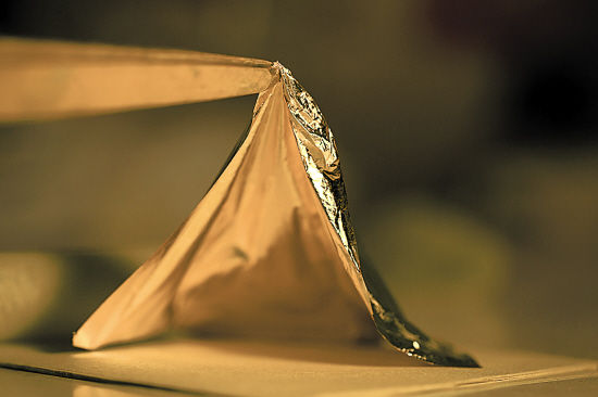 制作乌木泥金扇的金箔,薄如蝉翼