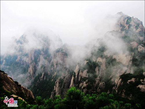 每年5-7月是江南的雨季,这时黄山天气就像小孩的脸一样说变就变。正说着,风儿伴着细雨飘然而来,青松绿树轻轻摇曳,雨点落在树叶上的声音,仿佛是恋人在窃窃私语,泉溪开始涌动起生命的欢唱。风起云涌,宛如无数个身披白纱的仙女,从峰峦中间轻盈款款而来,轻抚着你的脸庞,缭绕着你的身躯。